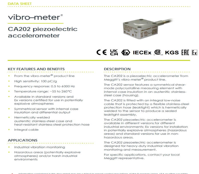 شتابسنج CA202 به دلیل حساسیت و قابلیت اطمینان بالا، به طور گسترده در زمینههای فوق مورد استفاده قرار میگیرد و به دستیابی به اندازهگیری دقیق ارتعاش و شتاب کمک میکند.