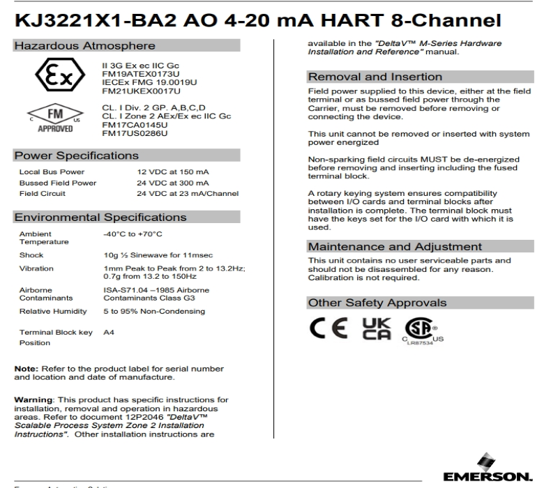 ماژول ورودی آنالوگ Emerson KJ3221X1-BA2